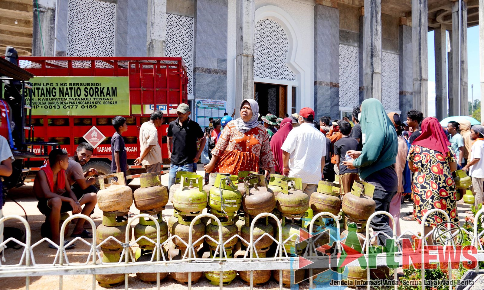 Distribusi gas dilakukan di Masjid Agung Al Muslimin Tapteng dengan harga sesuai Harga Eceran Tertinggi (HET) sebesar Rp19.000. Warga yang telah menerima diberi tanda khusus untuk memastikan pemerataan.