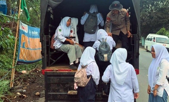 Kehadiran personel Brimob ini menjadi jawaban atas kekhawatiran para orangtua setelah angkutan umum berhenti beroperasi akibat kerusakan akses jalan yang cukup parah. Tanpa ragu, para personel kepolisian ini turun tangan untuk menjemput anak-anak dari rumah mereka masing-masing agar tetap bisa mencapai bangku sekolah dengan aman dan tepat waktu.