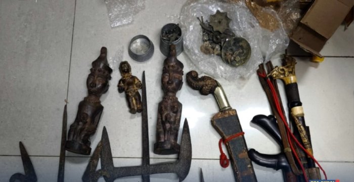 Barang bukti yang berhasil diselamatkan mencakup koleksi yang beragam, mulai dari perangkat rumah tangga kuno seperti kendi, cawan, dan gerabah, hingga benda-benda sakral seperti patung arca dan logam kuno.