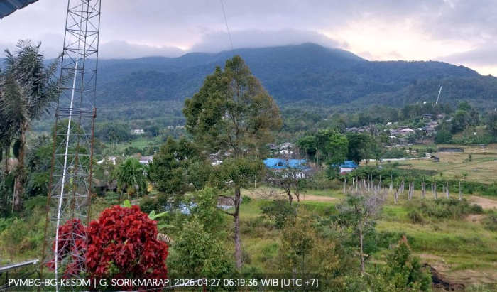 Penampakan Gunung Sorik Marapi pada Senin (27/4/2026) pukul 06.19 WIB. (FOTO: PVMBG)