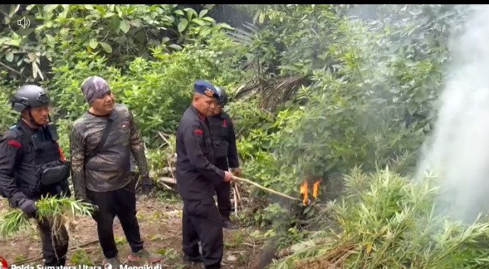 Brimob Sumut Bakar 10 Hektare Ladang Ganja di Panyabungan Timur