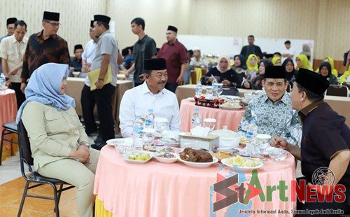 Bupati Madina H. Saipullah Nasution, Wabup Atika Azmi Utammi, dan Ketua DPRD Erwin Efendi Lubis bersama Wamenag KH Romo Raden Muhammad Syafi’i dalam acara silaturahmi di Aula Hotel Rindang, Panyabungan, Rabu (24/12/2025). (FOTO: STARTNEWS/DISKOMNFO MADINA)
