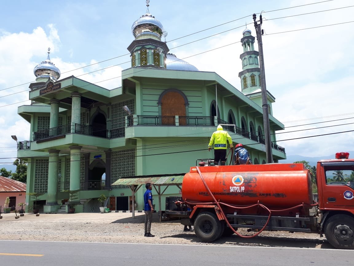 Panyabungan, StArtNews-Gugus tugas Covid-19 Kabupaten Mandailing Natal selain melakukan penyemprotan cairan disinfektan di Pasar Baru Panyabungan, petugas yang dikomandoi Kepala Satuan Polisi Pamong Praja, Lismulyadi dan Kepala Dinas Kominfo juga melakukan penyemprotan disinfektan di sepanjang jalan kota Panyabungan, tempat ibadah dan SPBU dengan menggunakan mobil damkar, Rabu (25/3).