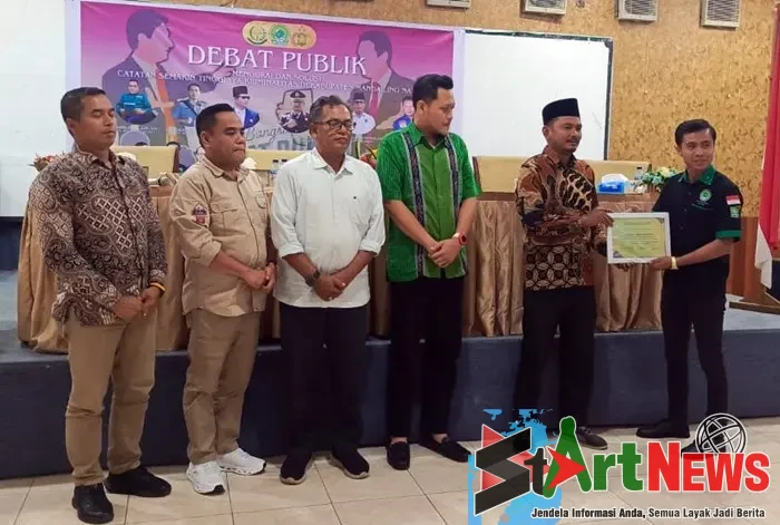 Iptu Bagus Seto (paling kiri) saat menjadi pembicara debat publik yang diadkan Garda Bangsa Madina di Hotel Rindang, Panyabungan, Jumat (26/9/2025). (FOTO: DOK. STARTNEWS)