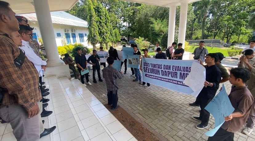 Dalam akainya pengunjuk rasa menyoroti keberadaan Satuan Pemenuhan Pelayanan Gizi (SPPG) serta pelaksanaan program Makan Bergizi Gratis (MBG) di Kabupaten Madina.