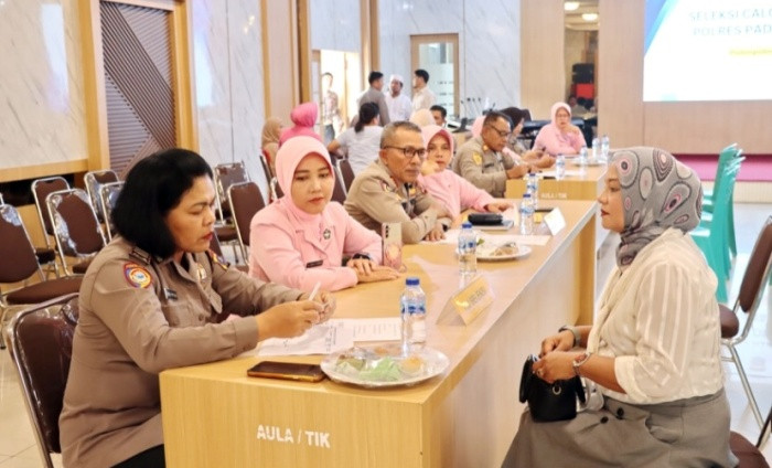 Padangsidimpuan, StartNews – Polres Padangsidimpuan menggelar seleksi calon relawan Satuan Pelayanan Program Gizi (SPPG) 2 di Aula Pratidina Polres Padangsidimpuan, Selasa (20/1/2026). Kegiatan ini dipimpin Kapolres AKBP Wira Prayatna didampingi jajaran pejabat utama dan pengurus Bhayangkari Cabang Padangsidimpuan.
