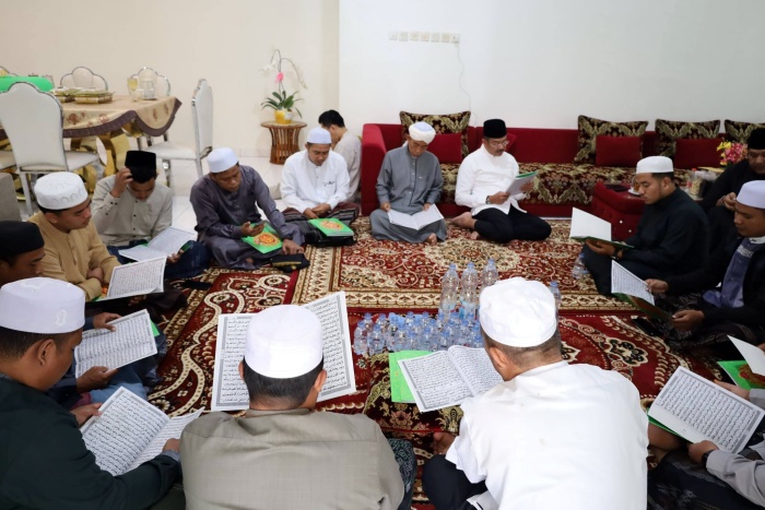 Suasana khidmat menyelimuti Desa Parbangunan, Kecamatan Panyabungan, saat deretan pria bersahaja duduk bersila melantunkan khataman Al-Qur’an yang memenuhi ruangan dengan ketenangan.