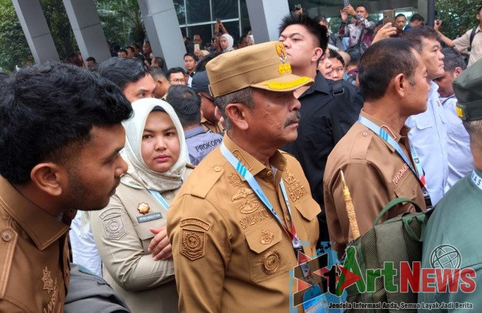 Bupati Madina H. Saipullah Nasution dan Wakil Bupati Atika Azmi Utammi Nasution tampak mengantre memasuki tempat Rakornas di Sentul International Convention Center (SICC), Bogor, Senin (2/2/2026) pagi. (FOTO: DISKOMINFO MADINA)