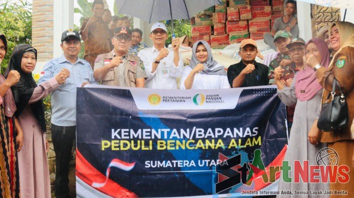 Bantuan diserahkan langsung oleh Staf Ahli Kementerian Pertanian Ali Jamil. Paket bantuan yang diberikan meliputi kebutuhan pokok seperti beras, minyak goreng, mi instan, makanan ringan, hingga pakaian layak pakai.