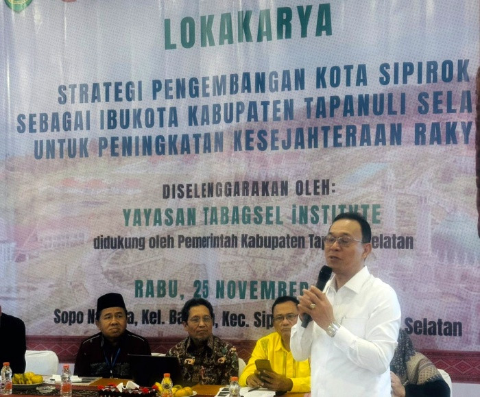 Tapsel, StartNews – Upaya mendorong percepatan pembangunan Kota Sipirok sebagai pusat pemerintahan dan pertumbuhan ekonomi Kabupaten Tapanuli Selatan (Tapsel) kembali menguat dengan digelarnya Lokakarya oleh Yayasan Tabagsel Institvte, Selasa (25/11/2025).