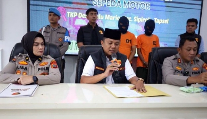 Polres Tapanuli Selatan (Tapsel) mengungkap kasus pencurian motor di Sipirok. Dua pelaku asal Padangsidimpuan ditangkap setelah aksi kejar-kejaran dengan warga.