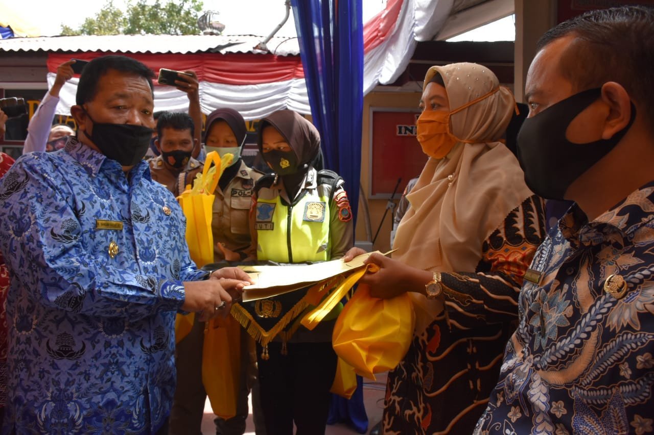 1. Bupati Madina Drs Dahlan Hasan nasution menyerahkan secara simbolis masker kepada Lurah.