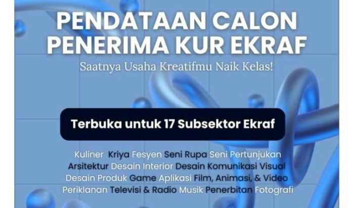 Pemerintah mengingatkan pendataan ini dikhususkan bagi mereka yang dinilai layak secara usaha dan masuk dalam kategori subsektor ekonomi kreatif yang telah ditetapkan oleh pemerintah pusat.