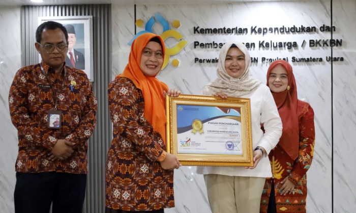 Piagam penghargaan bergengsi tersebut diterima oleh Wakil Bupati Madina Atika Azmi Utammi Nasution dalam agenda Rapat Pengendalian Program dan Anggaran yang berlangsung di Aula Perwakilan BKKBN Sumatera Utara, Medan, Selasa (28/4/2026).