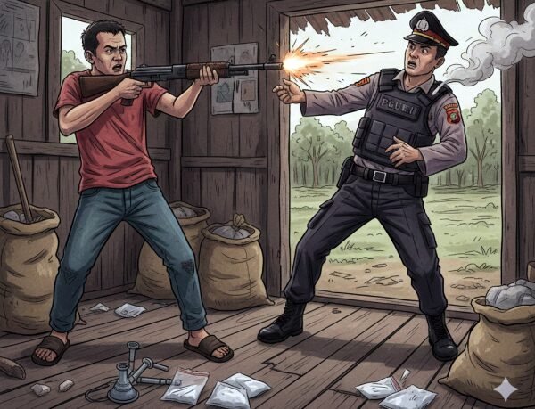 Bireuen, StartNews – Seorang terduga pengedar narkotika berinisial L (28) di Kabupaten Bireuen, Aceh, nekat membak polisi menggunakan senjata api rakitan saat hendak diringkus dalam operasi pemberantasan narkoba. Insiden menegangkan ini terjadi ketika tim dari kepolisian melakukan pengembangan kasus ke sebuah rumah di Desa Paya Cut, Kecamatan Peusangan.