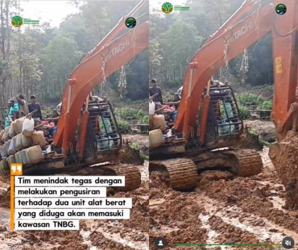 Aktivitas patroli dan pengusiran alat berat excavator itu terekam dalam video yang diunggah akun Instagram resmi Balai TNBG, btn_batanggadis, yang dilihat pada Sabtu (15/11/2025).