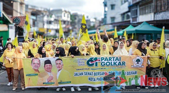 Mereka tampak antusias mengikuti kegiatan jalan sehat untuk memperingati HUT ke-61 Partai Golkar. Kegiatan yang diikuti sekitar 600 peserta dari enam kecamatan se-Kota Padangsidimpuan ini menjadi ajang silaturahmi sekaligus momentum kebersamaan antara kader, simpatisan, dan masyarakat umum.