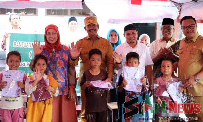 Pada kesempatan yang sama, Saipullah turut menyerahkan bantuan dari Badan Amil Zakat Nasional (Baznas) Madina berupa seragam sekolah untuk anak-anak di pengungsian.