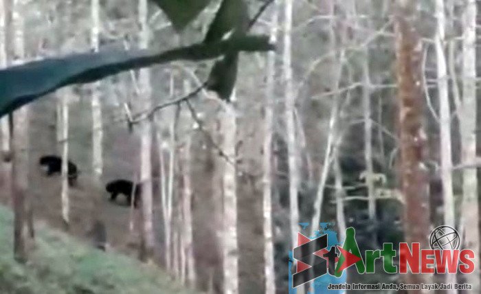 Kemunculan satwa liar ini kali pertama terekam oleh kamera ponsel seorang warga bernama Zulkarnain saat kedua beruang tersebut melintas di kebun karet milik H. Samsul.