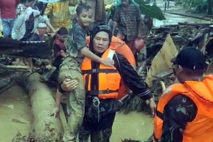 Dia diduga terseret arus beberapa meter sebelum berhasil mencapai tempat yang lebih tinggi dan kemudian ditolong oleh warga setempat.