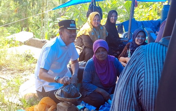 Saat memantau Pasar Kotanopan, Saipullah berdialog dengan beberapa pedagang sayur, ikan, dan daging.