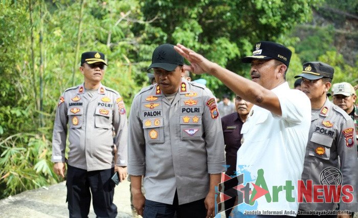 Batangnatal, StartNews – Bupati Mandailing Natal (Madina) H. Saipullah Nasution bersama Kapolres Madina AKBP Arie Sofandi Paloh meninjau lokasi longsor yang memutus total akses jalan menuju Desa Banjar Melayu, Kecamatan Batangnatal, Madina, Jumat (5/12/2025). Solusinya, untuk sementara dibuka jalur alternatif.